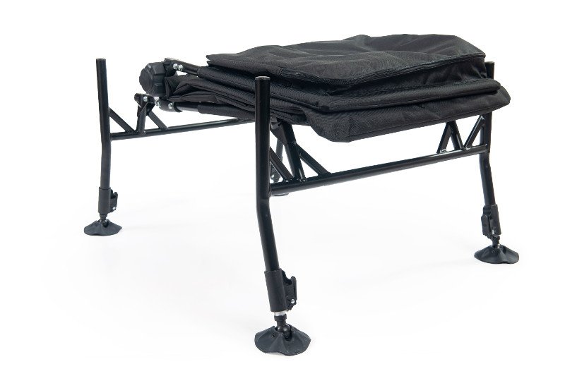 Nova feeder stolica koja dolazi kao novitet za 2020. godinu. Radi se o laganoj stolici koja je izradjena sa dosta jakom, dodatno ojačanom konstrukcijom. Poseduje sve četiri teleskopske noge tako da se može postaviti i nivelisati gotovo na svim terenima, sa širokim stopama koje će pomoći da stolica ne propada u meko tlo. Stolicu odlikuje velika stabilnost zbog većeg rastojanja izmedju nožica. Noge su promera fi 25 tako da na njih možete postaviti gotovo sve dodatke, držače, armove, tacne... Podeduje veoma jak, izdržljiv i funkcionalan sistem za podešavanje nagiba naslona koji se može podešavati od 90 do 180 stepeni (horizontalni položaj). Platno na stolici je veoma kvalitetno i jako, ujedno i lako za održavanje brisanjem vlažnom krpom. Još jedna prednost ove stolice u odnosu na ostale je veliki džep na zadnjem delu naslona, u koji možete odložiti dosta delova pribora i opreme za ribolov. Dimenzije džepa su 46 x 38 cm, dok je dubina 6 cm. Stolica se može u potpunosti sklopiti, tako da će u vašem priboru zauzeti veoma malo prostora.